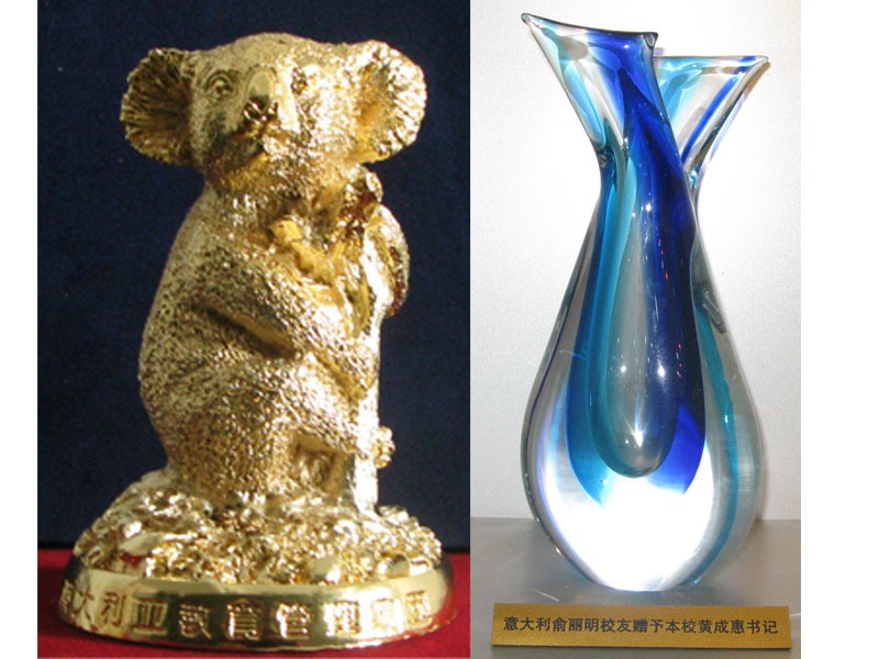 此前,黄成惠教授还向学校档案馆捐赠了包括澳大利亚教育管理集团赠予他本人的金考拉,意大利俞丽明校友赠予他的花瓶,本校中医系78级校友赠予他的漆线雕画。