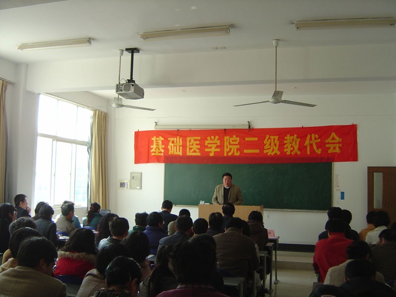 副院长王明艳同志宣读《基础医学院教师教学工作规程》。原党委书记赵聚山同志作了基础医学院2008年自由资产收支情况报告。
