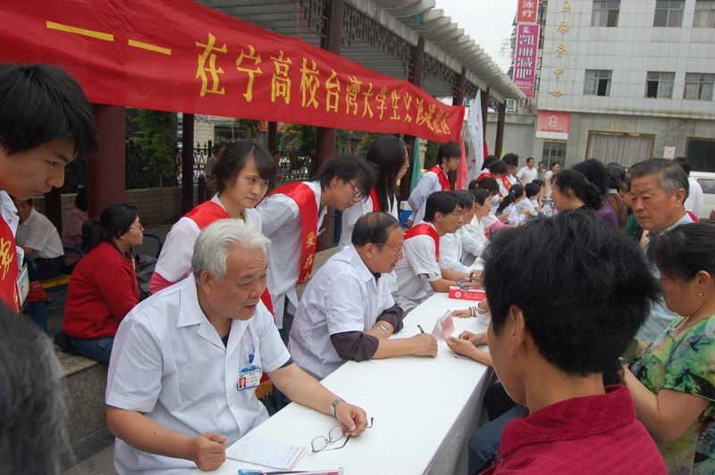 为响应南京市委提出的把南京“博爱之都”打造成“志愿之城”的号召,5月23日,我校以“志愿服务社会、爱心共筑和谐”为主题,在台港澳教育中心赵熔主任的带领下与市台办、市政协港澳台侨和外事委员会、市台盟、市台联共同组织我校专家与台湾大学生志愿者走进敬老院、走进社区为敬老院老人、社区台胞、台属和居民开展义诊志愿服务活动。活动分别在秦淮区秦虹社区和浦口区汤泉街道敬老院开展,我校专家和台湾大学生志愿者为近百名患者进行义诊并向他们赠送了药品。此次活动获得了敬老院老人、社区居民的称赞,我校师生践行了服务社会的志愿精神、共筑和谐的爱心精神。