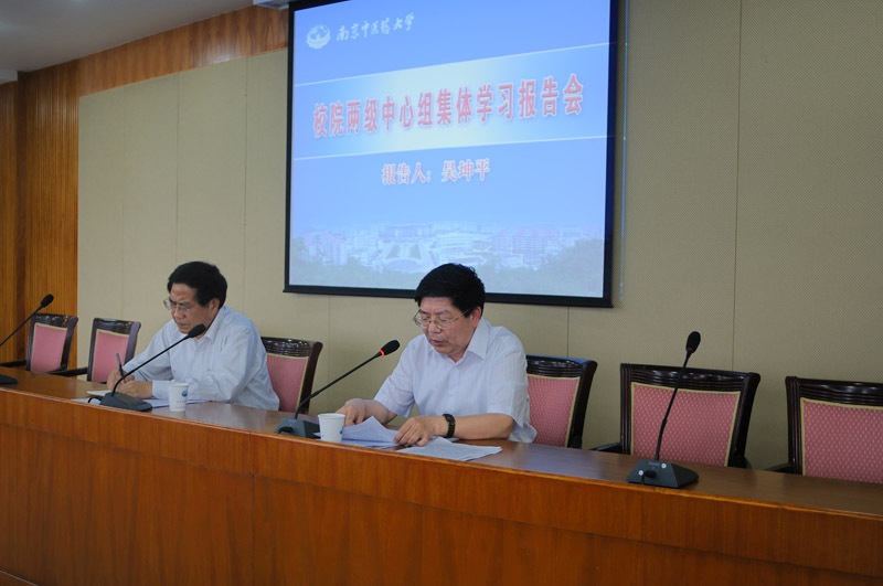6月9日下午,省卫生厅吴坤平副厅长应邀来我校作《国务院关于扶持和促进中医药事业发展的若干意见》专题辅导报告。专题报告会由校党委黄成惠书记主持,全体党委委员、全体中层以上干部、民主党派负责人等参加了会议,并共同听取了吴厅长的重要报告。