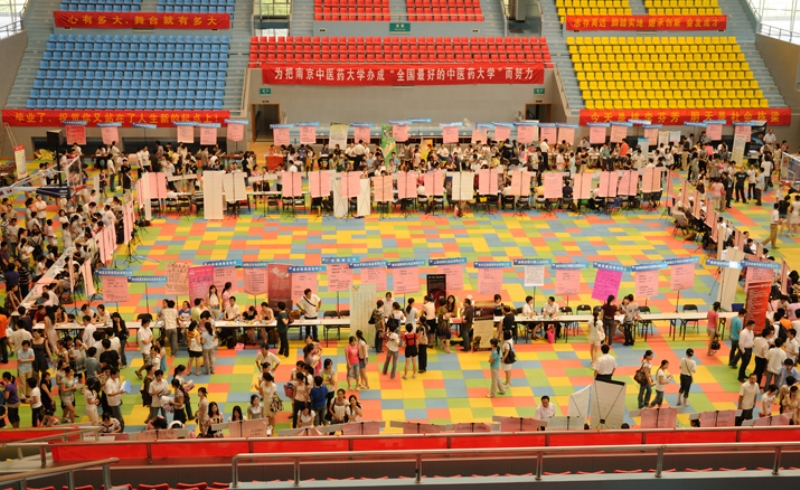 6月19日,南京中医药大学2009届毕业生大型校内人才市场暨夏季供需见面洽谈会在仙林校区体育馆举行。空军四五四医院、苏州市中医院、仙灵保雅制药、扬子江药业、先声药业、中国平安保险等150余家用人单位应邀参会,招聘需求达到1000余个。众多的参会单位不仅吸引了大量的毕业生参会洽谈,不少在校同学也前来感受招聘会的气氛。