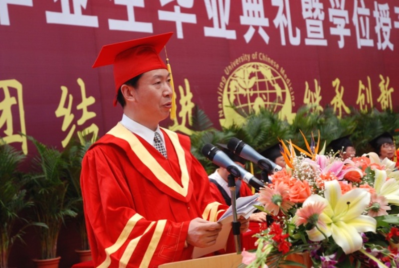 2009624上午,南京中医药大学2009届本科毕业生毕业典礼暨学位授予仪式在仙林校区体育馆隆重举行。校党委书记黄成惠教授、校长、校学位评定委员会主席吴勉华教授、校党委副书记马家忠教授、副校长张树泉教授、副校长段金廒教授、副校长黄桂成教授、党委副书记王家法教授和校学位评定委员会委员出席了典礼。典礼由校党委副书记、副校长、校学位评定委员会副主席陈涤平教授主持,段金廒副校长宣读了优秀毕业生表彰决定,黄桂成副校长宣读了学士学位授予决定。