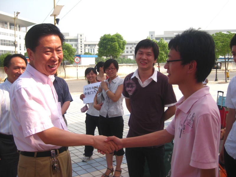 伴随着我校2009届本科毕业生陆续离开母校,校园里到处流淌着依依惜别的深情。625日上午,校党委副书记、副校长陈涤平教授、副校长黄桂成教授、学工处、校团委等部门和各学院负责人,顶着炎炎的烈日,专程来到大学生活动中心广场看望并热烈欢送广大毕业生奔赴新的人生征程。