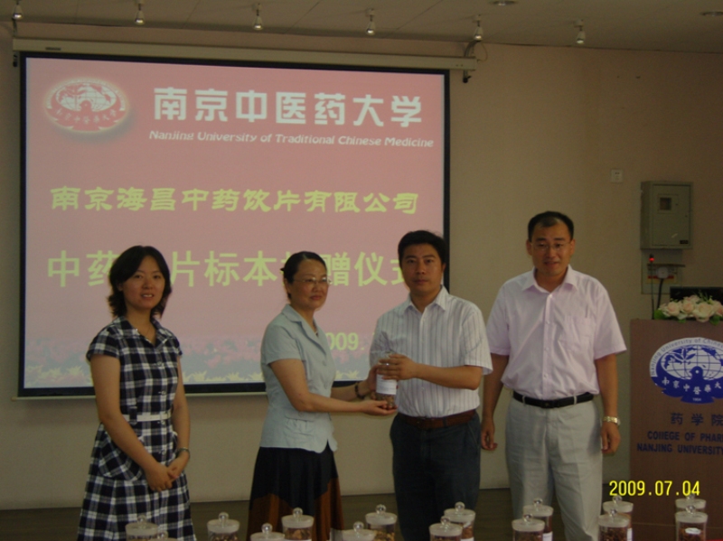 74上午,我校药学院隆重召开了南京海昌中药饮片有限公司中药饮片标本捐赠仪式,恰逢海昌公司成立一周年。出席此次捐赠仪式的有南京中医药大学副校长、南京海昌中药饮片有限公司的董事长蔡宝昌教授,南京海昌中药饮片有限公司副总经理徐自升,南京海昌药业集团总裁助理王仪峰,以及药学院的党政领导和教研室主任。南京海昌中药饮片有限公司向药学院中药标本馆捐赠了215种中药饮片标本,此批中药饮片标本是首批按《中国药典》(2010年版)中药饮片统一炮制生产工艺和标准制备而成的精品,具有重要的收藏和使用价值。捐赠仪式上,吴皓院长代表药学院向南京海昌公司颁发了捐赠证书,同时蔡宝昌教授也对标本馆的建设和药学院的发展提出了建议和希望。此次捐赠开创了企业向我校中药标本馆捐赠的先河,同时也加强了校企联合,促进了中药标本馆的发展。