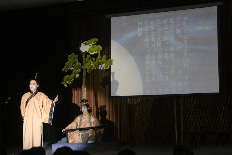 台下学子嘉宾汇聚一堂,跟随着台上的表演者,在长袍盈袖的华丽转身中,于抑扬顿挫的诵读与弦歌声中,倾听趣味典故,感悟大医情怀,穿越时空,领略经典,享乐其中,感受传统文化的巡礼。