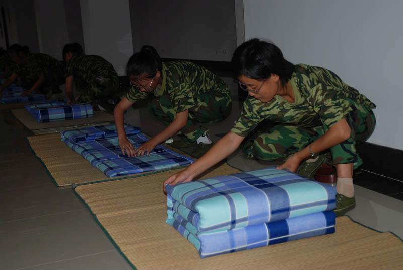 本届新生军训,重在培养学生“特别能战斗,特别能吃苦,特别能忍耐,特别能创新”的工兵精神,增强学生的责任感和使命感。同时,按照学校统一部署,本届军训与防控甲流工作相结合,特制订了《南京中医药大学新生军训防控甲型H1N1流感工作方案》,建立以排、连、营、团、学校为单位的五级网络监控,确保广大师生员工的健康和安全。