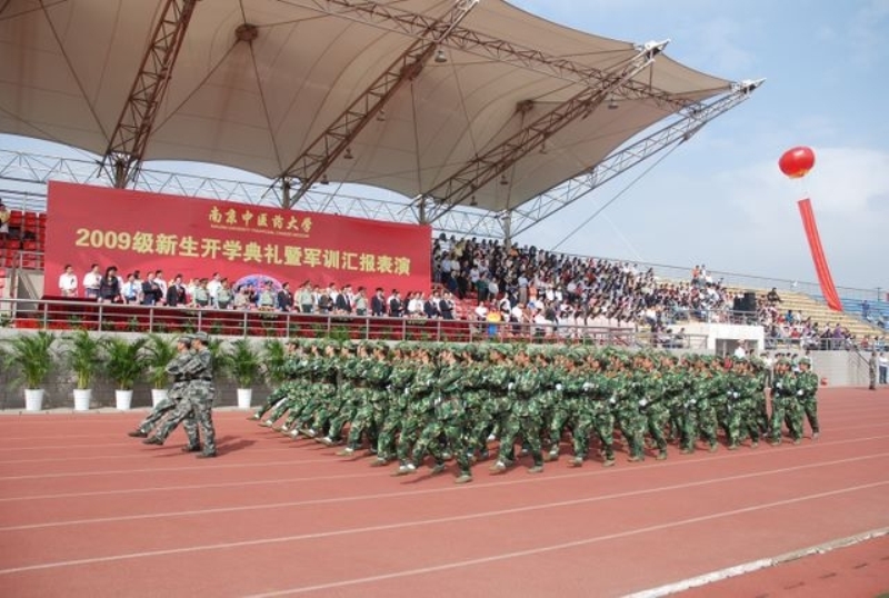 9月30日上午,我校2009级新生开学典礼暨军训汇报表演在仙林校区西操场隆重举行。绿树成荫、景色秀美的校园内,秋风飒爽、红旗招展,身着戎装的2009级学子,威武肃立、意气风发,军训生活的磨练铸就出新生们坚毅无比的品性,蓬勃的校园气息展现出2009级学子冲天的豪情,潇潇秋风难抑2009级新生迎接大学学习生涯的激动。