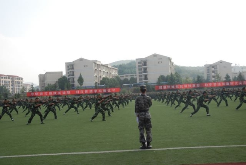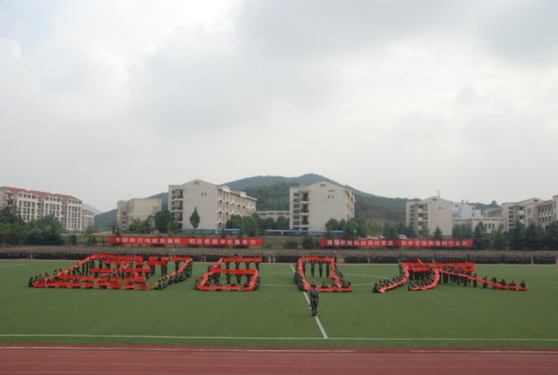 在军训汇报表演上,我校女子国旗班首先举行了庄严的升旗仪式。校党委黄成惠书记检阅了各受阅方队。在雄壮的分列式进行曲中, 2400余名2009级新生组成的20个受训方队和国旗班方队迈着矫健的步伐,精神抖擞地正步走过主席台。同学们以严整的军容、整齐的步伐、响亮的口号、蓬勃的精神风貌展示了新生刻苦训练的成果,赢得了学校领导、承训单位首长和在场师生员工的阵阵掌声。分列式表演后,同学们还进行了格斗术、刺杀操、军体拳、少林棍术表演。2009年恰逢国庆60周年,为了表示对祖国的美好祝愿,同学们组成了“国庆60”的字样,以此向国庆六十周年献礼。