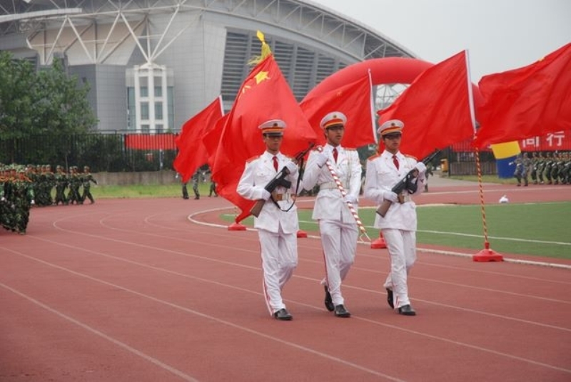 930日上午,我校2009级新生开学典礼暨军训汇报表演在仙林校区西操场隆重举行。绿树成荫、景色秀美的校园内,秋风飒爽、红旗招展,身着戎装的2009级学子,威武肃立、意气风发,军训生活的磨练铸就出新生们坚毅无比的品性,蓬勃的校园气息展现出2009级学子冲天的豪情,潇潇秋风难抑2009级新生迎接大学学习生涯的激动。