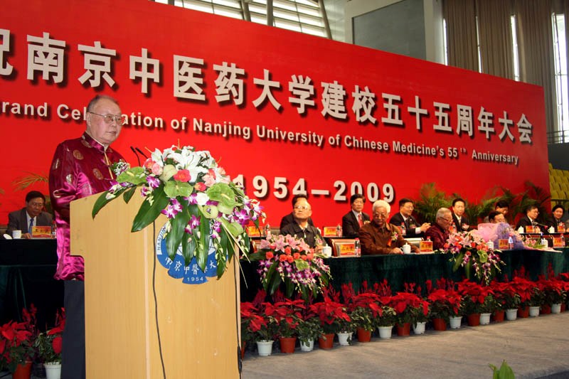 庆祝大会上,杰出校友代表康缘药业董事长萧伟,附属医院代表第一附属医院江苏省中医院院长刘沈林,教师代表、博士生导师薛博瑜,学生代表庄微也分别做了精彩的演讲,以庆贺学校55周年华诞。