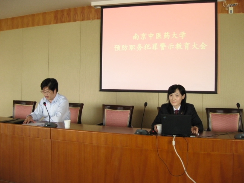 1022下午,学校在行政楼416会议室召开预防职务犯罪警示教育大会,邀请鼓楼区人民检察院副检察长徐明明同志给大家上了一堂深刻的警示教育课。会议由党委副书记、纪委书记马家忠同志主持,在校的校领导,全体中层干部,组织、人事、教务、学工、基建、财务、科技、后勤、后总、资产、招标等部门的科级以上干部共一百多人参加了会议。