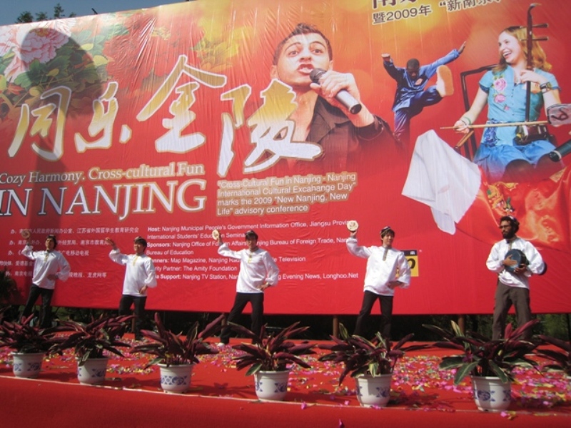 当天的白马公园人头攒动,热闹非凡,来自20多个国家的近千名外籍人士与南京市民一起赶了一场中西合璧的“洋庙会”。活动由“汇世界风采、览五洲风情、展金陵风貌、品美食风味、传博爱风尚”五大板块组成。各个高校呈上的精彩文艺表演获得了南京市民和外籍友人的交相称赞;10多个异域风情展台让市民朋友零距离触摸外国文化历史和风土人情;近30家涉外窗口单位和文化、教育、航空、旅游等单位,现场答疑解惑;24位来自民俗博物馆的民间艺人现场表演了绒花、剪纸、结绳、泥塑等传统民俗工艺的制作过程;近30家星级酒店和特色餐饮名店联合上演了一出异国美食大汇展的好戏。我校留学生在“汇世界风采—大型文艺汇演”中载歌载舞、大放异彩:韩国留学生闵妍泓演唱了一曲优美的“无人岛”;来自新加坡、印尼、韩国、越南、巴巴多斯等国的留学生奉献了歌舞“大阪城的姑娘”;以巴巴多斯梁仲敏同学为首的乐队不仅演唱了加勒比海民歌,并以精湛的歌艺演绎了中文流行歌曲。动人的旋律、出色的表演,让台下的观众不禁拍手叫好,充分感受到南中医留学生的多才多艺。