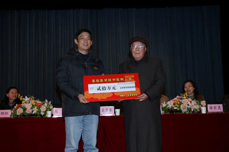 孟景春教授是国家首批(1978年)研究生导师,全国名老中医,国务院政府特殊津贴获得者。孟老一直十分关注中医大学生的成长成才,捐资助学由来已久。此次88岁高龄的孟老一次性捐资二十万元在基础医学院设立“中医树人奖”,旨在奖励品学兼优的同学,激励他们在中医学方面勤于学习,刻苦钻研,成为具有真才实学、热爱并传承中医的医学人才。