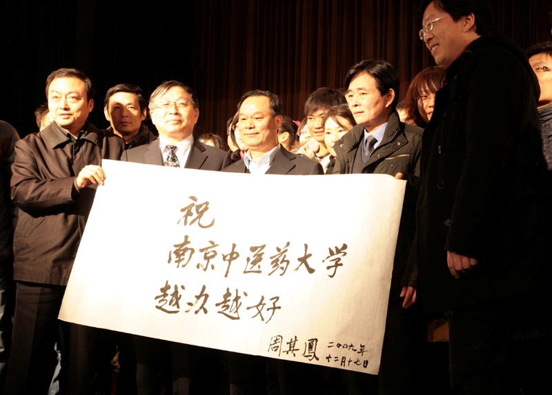 讲座中,周其凤校长用质朴平实的话语,诚恳平易的态度,独特而又坚定地阐述了自己对于“中国大学创新型人才培养”的认知。每位在场听众都可以深深感受到他对中国教育发展的信心,以及对青年一代学子的殷切期望。活动最后周其凤校长应我校师生现场邀请,欣笔题下“祝南京中医药大学越办越好”、“学好中医,弘扬国粹,报效祖国”。