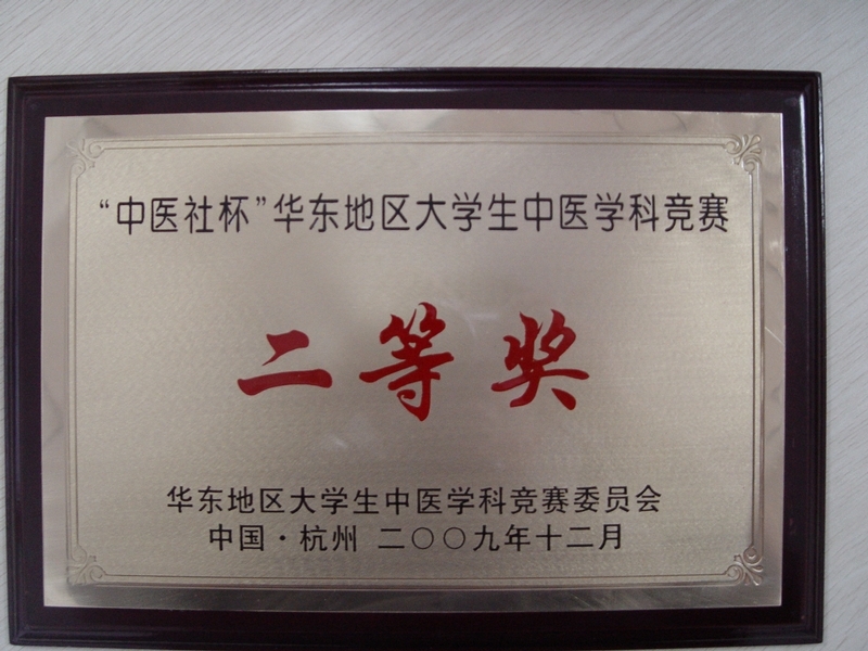 20091212,“中医社杯”华东地区首届大学生中医学科竞赛暨全国邀请赛在浙江中医药大学隆重举行。在教务处刘跃光处长的带领下,师生一行15人赴浙江中医药大学参加比赛,两支代表队经过初赛、决赛的重重比拼,获得了初赛一等奖决赛二等奖的好成绩。