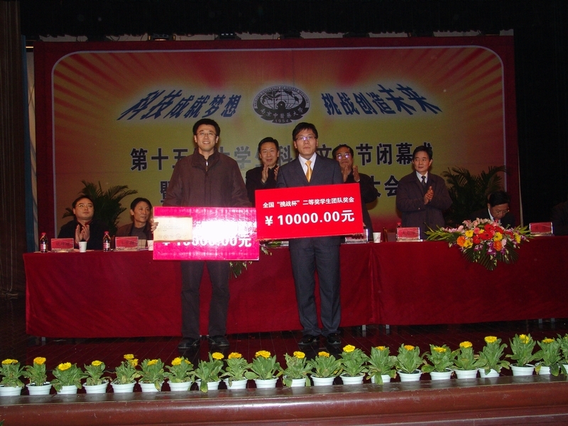 2009年12月23日下午2点,第十五届大学生科技文化节闭幕式暨“挑战杯”总结表彰大会在我校大学生活动中心小剧场隆重举行。校党委书记黄成惠教授,校长吴勉华教授,党委副书记、副校长陈涤平教授,副校长黄桂成教授,基础医学院名誉院长、南京市人大常委会副主任、大学生科协顾问黄煌教授,校科技处王中越处长,教务处刘跃光处长,学工处姚峥嵘处长,研究生院吴启南副院长,以及各学院院长和分管科技和学生工作领导,大学生科协顾问、优秀指导老师代表,“挑战杯”系列竞赛获奖集体、学生及指导老师,校学生素质拓展优秀指导老师,各学院分团委书记、指导学生学术科技活动的辅导员老师,南京大学、东南大学等在宁兄弟院校大学生科协代表,校内各学生组织负责人等出席了大会。大会由校团委郑晓红书记主持。