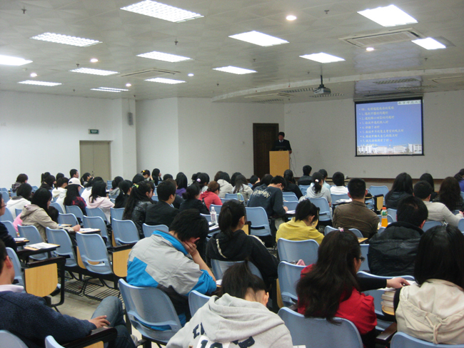 为了进一步提高我校同学的综合素质,使广大同学对村官有进一步的了解,校学工处于424日下午,特邀南京师范大学社会发展学院党委书记王新文教授在我校大学生活动中心217报告厅为广大同学举办了到村任职专题辅导讲座。王新文教授对公务员面试有着长期、深入的研究,积累了丰富的经验。本场讲座他从结构化面试的基础知识、面试时的形象礼仪、面试当中涉及的常见问题以及有关注意事项进行了系统地分析和讲解,又现场挑选了同学上台进行模拟面试,并进行了现场点评。王教授的讲座既包含大量的实用信息,又不失生动幽默,同学们不时报以热烈的掌声,现场气氛十分热烈。在聆听了王教授的讲座以后,同学们纷纷表示,王教授的讲座拓宽了自己的视野,不仅对即将到来的面试更加充满了信心,而且对自己以后的发展也是大有裨益。