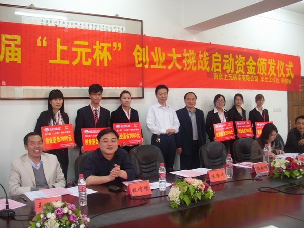 大学生创业教育,对深化高等教育改革,缓解就业压力等具有十分重要而深远的意义。5月10日16:30,由校学生处主办,南京上元药店有限公司赞助,药学院就业与发展协会承办的第二届“上元杯”创业大挑战启动资金仪式在大学生活动中心三楼会议室举行。出席本次活动的领导和嘉宾有:校党委常委陈涤平副书记、南京上元药店有限公司董事长杨念明先生、学生工作处姚峥嵘处长、校团委杨羽副书记、药学院党委王九龙书记、基础医学院孙新新副书记及兄弟院系老师,启动仪式由药学院王珏副书记主持。 经过全校宣传发动、各学院组队申请、组委会遴选,最终有6支可行性创业团队获得了南京上元药店立项全资助,2个团队获得立项半资助,8支参赛团队项目包括:广告传媒、办公数码产品、动漫产品、夏季日用品等不同方面的创业方案。仪式上,王珏副书记介绍了本次创业实践活动的意义和选拔过程,陈涤平副书记和南京上元药店有限公司杨念明董事长共同为创业团队代表颁发了2000元创业启动资金,随后8个团队签订了创业诚信承诺书。上元药店总经理杨总被这些优秀团队成员创业的热情深深感动,并给予了肯定,希望这8个团队能在公平、公开、公正的基础上进行创业并有所收获。陈涤平副书记在讲话中指出,大学生创业一直受到受到国家和高校的高度重视,我校也在创业教育和实践活动中不断探索推进,他希望各创业团队能够牢记创业的宗旨,注重创业技能的培养和经验的积累,而不要过多关注短期经济利益;要拓宽视野和思路,敢想敢干,心有多大,舞台就有多大;要加强团结协作,成败是整体而非个人,成员能够同甘共苦,经营成果能够公开且合理地分享,团队就会形成坚强的凝聚力与一体感;要不断学习积累各方面知识为基础,以实际促销为手段,以拓展大学生综合素质为核心,强调社会经验的积累,最终使参赛学生整体综合素质得到锻炼的目标。陈书记强调,他期待有更多的创业作品能与我们的专业相结合,形成具有中医药特色的创业实践。 王珏副书记宣布第二届“上元杯”创业大挑战资金启动仪式圆满结束,为期三周的创业实战正式开始!