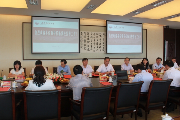 2010610上午,北京中医药大学副校长乔旺忠、徐孝带领工会、人事处、学生处、发展规划处、实验室与设备处、管理学院、针灸学院等部门和学院的主要领导来我校进行调研。吴勉华校长在行政楼315会议室接待了乔校长一行,并召开了座谈会。段金廒副校长、黄桂成副校长、党委办公室夏登杰主任、校长办公室程海波主任、校工会徐国勋主席、人事处车玮处长、基建处王进处长、第二临床医学院顾一煌院长、经贸管理学院申俊龙院长、教务处朱亮副处长、科技处范欣生副处长、学工处屠宏斐副处长、校医院严娟副院长参加了座谈会。