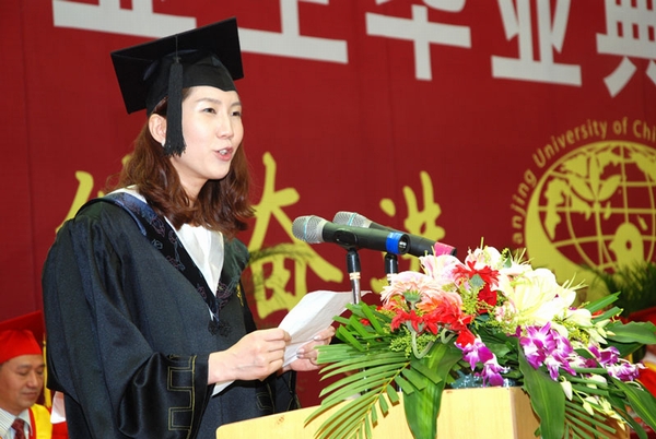 毕业生代表国际教育学院韩国籍崔无穷同学发言