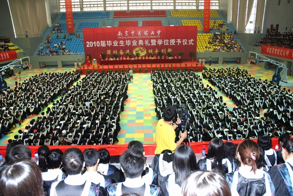 2010624日上午,我校2010届本科毕业生毕业典礼暨学位授予仪式在仙林校区体育馆隆重举行。校党委黄成惠书记、校学位评定委员会主席吴勉华校长、我校杰出校友、江苏先声药业集团董事长兼CEO任晋生先生、校党委马家忠副书记、第一附属医院院长刘沈林副校长、蔡宝昌副校长、段金廒副校长、夏有兵副校长、原党委王家法副书记和校学位评定委员会委员出席了典礼。典礼由副校长、校学位评定委员会委员黄桂成教授主持,刘沈林副校长宣读了优秀毕业生表彰决定,段金廒副校长宣读了学士学位授予决定。