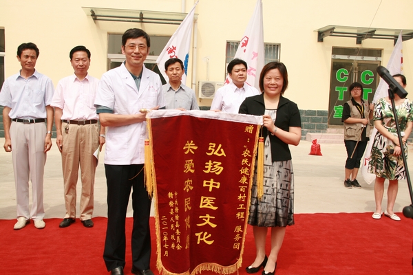 715上午9:30,“农民健康百村工程”走进赣榆启动仪式在连云港赣榆县沙河镇卫生院隆重举行,我校党委副书记陈涤平、江苏省红十字会副会长张立民、《农民日报》江苏记者站站长沈建华、共青团连云港市委书记任瑜、中共赣榆县常委、宣传部长孙海、赣榆县人民政府副县长孙玉等省市领导参加了仪式。在启动仪式上,中共赣榆县常委、宣传部长孙海同志致欢迎辞。江苏省红十字会副会长张立民,校党委副书记陈涤平教授也分别发表了重要讲话,陈书记希望能够通过本次活动,让我校学生、以及广大苏北农民群众在其中真正受益。最后,赣榆县人民政府副县长孙玉同志向“农民健康百村工程”服务团团长唐德才教授赠送了锦旗。