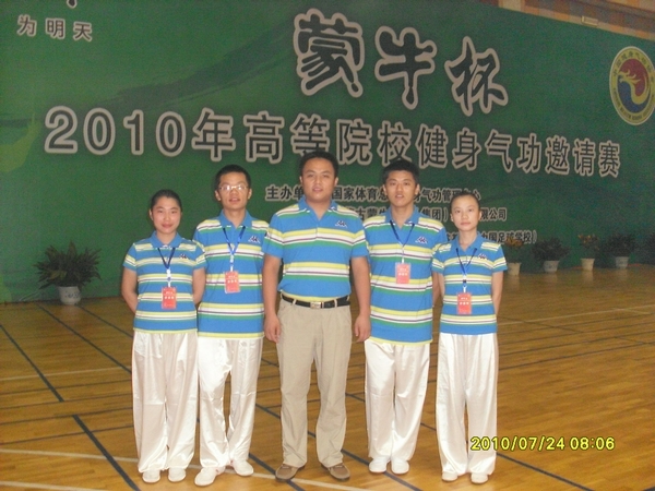 由国家体育总局健身气功管理中心主办的全国高等院校健身气功邀请赛于2010724-25日在国家体育总局秦皇岛训练基地举行。本次赛事共有清华大学、北京体育大学、武汉体育学院、上海体育学院、南京中医药大学等全国44所知名高校共计176名运动员参赛。我校代表队由体育部刘宏亮老师担任教练,队员由第二临医学院的潘桦飞、王薇、范遥遥、韦庆波等同学组成。比赛中,我校代表队充分发扬奋勇争先、不畏强手、顽强拼搏,赛出水平,赛出风格的精神,最终获得“五禽戏集体赛三等奖”和“易筋经集体赛三等奖”的好成绩。