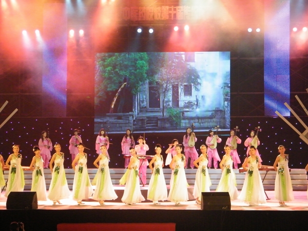 在简短的开幕式后,南京中医药大学的同学们为现场观众奉上了一场精彩的“印象中医”文艺演出。晚会运用水声光电的现代科技,以音乐、舞蹈、情景表演、民乐演奏、群诵、武术、昆京表演等艺术形式,营造了一个诗画音的中医印象。