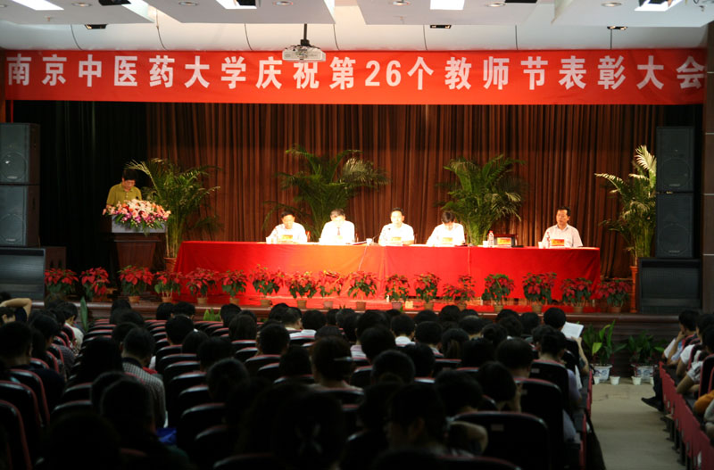 大会在庄严的国歌声中开始。马家忠副书记宣读了2009-2010学年获得各类校级以上表彰的集体或个人名单以及从事教育战线工作满30周年表彰名单。蔡宝昌副校长宣读了2010年南京中医药大学先声优秀教师奖表彰决定,王爱红等10位教师获此殊荣。韩新民教授代表全体获奖教师发言,表示将再接再厉,继续做好教书育人的工作。