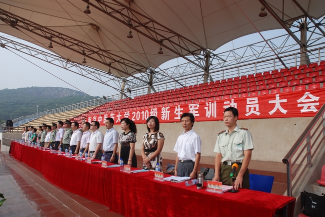 动员大会在庄严的国歌中拉开帷幕。首先由军训团团长吴巧利同志介绍军训组织实施计划,使同学们明确了本次军训的任务、安排、目标和要求。军训团教官代表英青松同志、受训同学代表药学院金孝亮同学先后发言,一致表示要以饱满的热情、高昂的斗志坚决圆满完成此次军训任务。解放军理工大学学员大队大队长姚尧同志向施训教官和全体受训同学提出军训要求。最后,学校党委副书记、副校长陈涤平同志做了重要讲话。陈书记从多方面阐述了大学生军训的重要意义,明确提出了参加集中军训是我国《兵役法》和《国防教育法》赋予每位大学生的神圣职责,并结合当前学校实际对今年军训工作提出了新的希望,要求各学院、各有关部门加强领导,团结合作,扎扎实实地做好学生军训中的各项工作,及时总结经验,以保证军训的顺利进行。动员大会在激昂的校歌声中圆满结束。