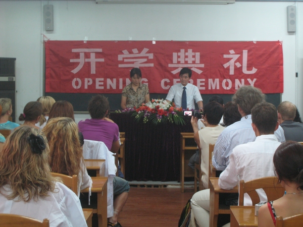 2010年8月25日下午16:00,我校国际教育学院在汉中门校区5号楼701室举行了隆重的开学典礼。典礼由国际教育学院张旭副院长主持,吴勉华校长致辞。吴校长代表学校全体师生员工欢迎44名挪威奥斯陆大学针灸学院学生的到来,并殷切希望各位同学能够珍惜此次难得的学习机会,多观察、多动手、多思考、多提问。奥斯陆大学针灸学院教务长Anette Koppang女士代表学生发言。经过长达22年与我校的合作,2008年该校经挪威教育研究部的批准,获得针灸学学士学位授予资格,今年更明确把在南京中医药大学为期4周的学习纳入该校针灸学学士学位课程的必修部分,校方和同学们都非常感谢南京中医药大学给予他们这样一个宝贵的临床实践的机会。
