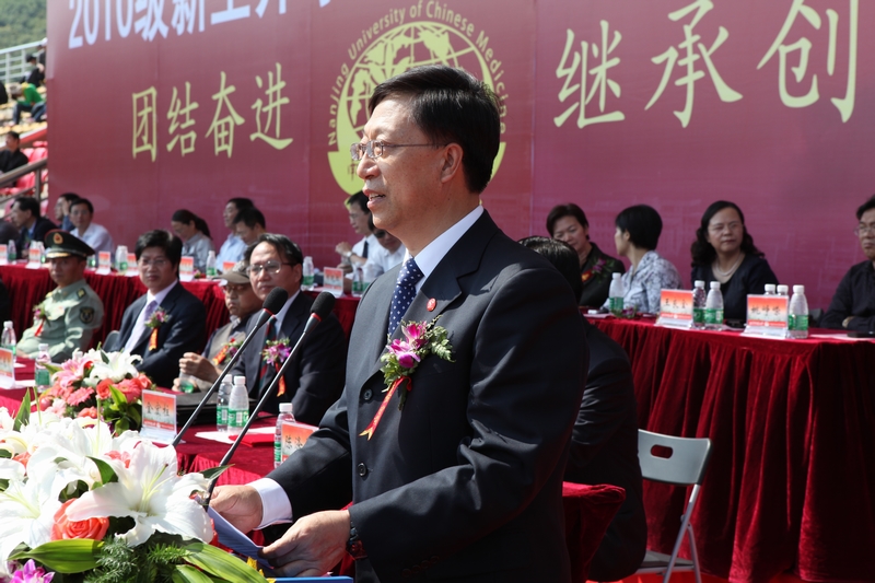 解放军理工大学工程兵工程学院训练部部长严骏大校、第二临床医学院博士生导师金宏柱教授、校学生会主席陆彬峰同学及本科生新生代表朱天翔同学先后发言。