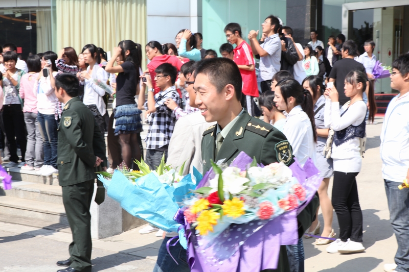 作为广大新生在大学里第一堂课的任课老师,教官们用他们的智慧照亮了莘莘学子的人生之路,用他们的汗水浇灌出杏林学子的成功之花。军训虽然只有短暂的半个月时间,但在这严格、紧张的军训期间,教官们和全体新生朝夕相处、共同锤炼,在艰苦训练中结下了深厚的友谊。在军训教官返回军营之际,校园内到处都弥漫着浓浓的离别之情。同学们夹道欢送,纷纷为既令人敬畏,又和蔼可亲的教官们送上鲜花,献上祝福,和最可爱的人依依惜别。