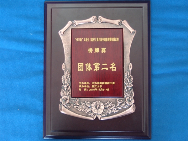 115日至7日,“长三角”大学生(高校)第六届中国象棋暨桥牌比赛在美丽的浙江大学隆重举行。由学生张建、张伟和教工组成的我校桥牌队,在诸多“211”大学中脱颖而出,经过九轮苦战,勇夺亚军。冠军为浙江大学、季军复旦大学、第四名中国科技大学、第五名南京大学。我校学生何骁隽、周耀威在中国象棋比赛中获得个人第五、第六名的好成绩。参赛师生共同为我校争得了荣誉。