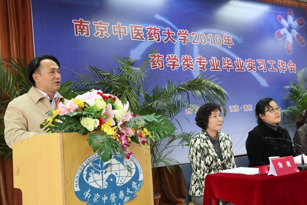 黄桂成副校长在会上作了重要讲话,他在介绍了学校教学科研工作基本情况的基础上,对教学基地和实习单位多年来的大力支持和无私帮助表示了感谢,希望今后与教学基地拓展合作的深度和广度,实现资源共享,不断为学校与教学基地的合作关系注入新的活力。随后,药学院陈蕾副院长对2010届药学类毕业生的实习工作情况进行了深入和全面的总结,陈建伟副院长讲解了毕业实习指导工作的要求,王珏副书记介绍了2011届药学类实习生情况。实习单位代表江苏省中医院姚毅主任、江苏省扬州市药品检验所房克慧所长、常州神马药业有限公司华新农总经理、毕业生指导教师代表中国药科大学孙敏捷教师分别发言,就如何加强毕业论文指导及毕业实习带教进行了经验交流。