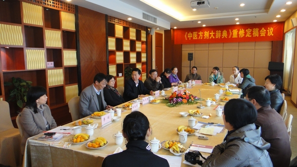 20101116上午,《中医方剂大辞典》重修订稿会议在金杏楼宾馆会议室召开,人民卫生出版中心张同君主任、李丽编辑,我校陈涤平副校长,科技处王中越处长,文献所及信息技术学院蔡爱华书记、王旭东院长、陈仁寿副院长以及承担和参加此次重修工作的相关专家参加了本次会议。