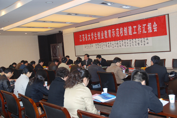 11月24日上午,江苏省教育厅专家组对我校创建“江苏省创业教育示范校”工作进行实地考察。专家组由江苏大学党委副书记、副校长姚冠新任组长,成员有南通大学学工处张莉莉副处长、江苏农林职业技术学院学工处毕德全处长和江苏大学团委实践部潘金彪部长。学校校长、校大学生就业创业工作指导委员会主任吴勉华教授、学校党委副书记、副校长、校大学生就业创业工作指导委员会副主任陈涤平教授、学校副校长、校大学生就业创业工作指导委员会副主任黄桂成教授,以及学校大学生就业创业工作指导委员会全体成员陪同了考察。