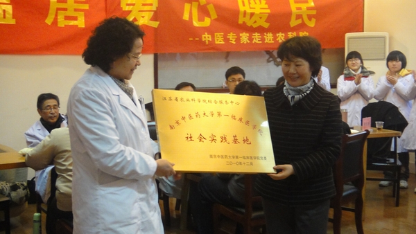 上午1150分,全体人员在方欣餐厅隆重举行江苏省农业科学院综合服务中心和中共南京中医药大学第一临床医学院委员会共建社会实践基地的授牌仪式。在热烈的掌声中,先后有江苏省农业科学院周建农院长、南京中医药大学第一临床医学院党委书记周惠芳教授及服务百居中心副理事长赵琴华同学致辞发言。授牌仪式的举行,标志南京中医药大学第一临床医学院在社会实践中又迈出坚实一步,用行动回报社会,服务大众。