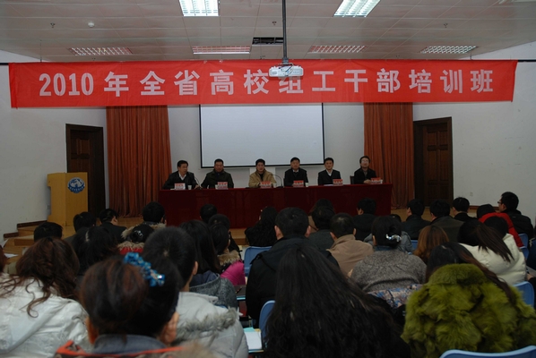 在开班仪式上,省委教育工委组织处孙曙平处长、施星国副处长、沈晓冬副处长、我校党委马家忠副书记、党委组织部翟玉祥部长、曹凯副部长到场祝贺。马家忠副书记代表学校党委发表了热情洋溢的讲话,他对各高校组工干部来我校表示热烈的欢迎,并向各位学员介绍了学校的基本情况,阐述了学校的办学理念和未来的发展蓝图,同时预祝此次培训班取得圆满成功。全体学员合影留念后,省委教育工委组织处孙曙平处长为学员们作了学习贯彻新修订的《中国共产党普通高等学校基层组织工作条例》精神的专题报告。