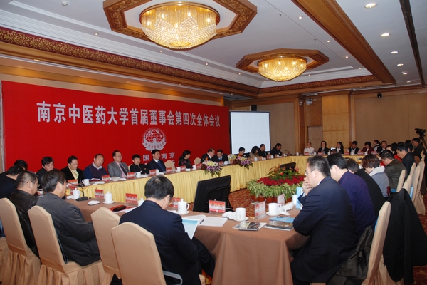 2010年12月25日上午,我校首届董事会第四次全体会议在南京西康宾馆隆重举行。国家卫生部原副部长、国家中医药管理局原局长、南京中医药大学名誉董事长朱庆生,国家中医药管理局副局长吴刚,江苏省政协副主席、江苏省委统战部部长周珉,以及省有关厅局领导、海内外知名人士、企业家、各附属医院负责人、学校校领导等董事会成员和部分中层干部出席会议。学校党委副书记、副校长陈涤平主持会议。