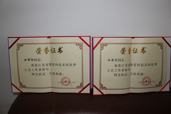 江苏省教科系统“优秀工会工作者”—— 校工会徐国勋、体育部汪建先