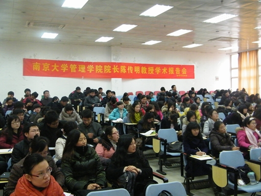 陈传明教授是我国知名的管理学家,南京大学文科首教授,南京大学企业战略研究所所长,兼任中国区管理研究会副理事长,享受国务院特殊津贴。他长期从事企业组织理论与企业战略管理研究,主持国家自然科学基金等项目10多项,出版专著5部,在《管理世界》、《中国工业经济》等期刊发表论文60多篇。此次活动由经贸管理学院就业发展协会承办。