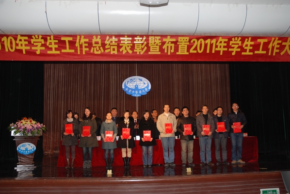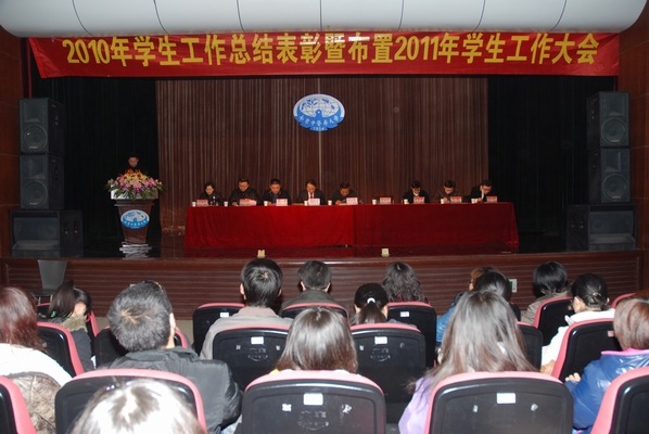 会上,校党委陈涤平副书记全面总结回顾了我校2010年学生工作取得的成绩,并对2011年学生工作进行了重点布置。陈书记指出,过去的一年,我校在大学生思想政治教育、学风建设、素质拓展、招生就业工作、辅导员队伍建设以及服务学生成长成才的水平和能力等方面取得了多项具有历史性突破的成果。2011年,学生工作要继续以科学发展观为指导,认真落实学校第二次党建工作会议精神和学校今年党政工作要点所提出的相关工作任务和要求,以争先创优为动力,为“十二五”工作开好头,起好步。围绕中心工作,抓好重点工作,创新常规工作,振奋精神,凝心聚力,开拓创新,不断创新体制机制,创新方法举措,创新载体途径,力争取得标志性成果,使学生教育管理工作成效进一步增强,特色更加显著,社会评价和学生满意度进一步提高。