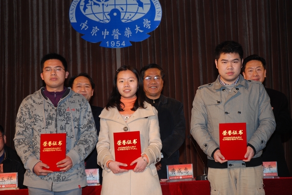 黄桂成副校长宣读了国家奖学金,优秀学生,十佳班级、班长,十佳辅导员、班主任表彰决定。主席台领导为获奖代表颁奖。外国语学院