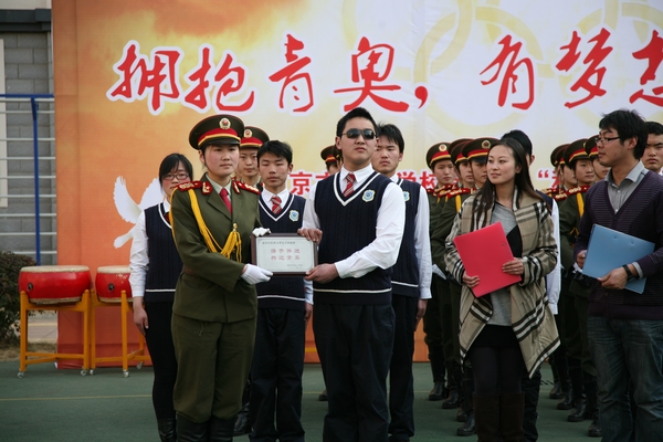 此次活动,我校大学生女子国旗班的队员们经过精心策划实地考察,结合盲校的特殊性,积极地投入到活动中。队员们定期去南京盲校对盲童们进行手把手动作规范训练,与他们结下了深厚的友谊。他们虽然只有模糊的光感甚至完全看不见,可他们的学习、生活并没有因此而失去色彩。通过与他们的接触,大家深刻地感受到盲童们对待生活乐观阳光的态度和对自己理想的执着追求。在每周帮助南京盲校国旗护卫队训练的时候,他们认真严谨,对自己的每一个动作都力求完美并虚心和我校国旗班成员学习,这些细节都十分让人感动。一分耕耘一分收获,在最后的表演中,他们动作规范到位,步伐整齐,他们那强烈于常人的勇气和青春的热情在灿烂的阳光下显得格外绚丽。在飘扬的五星红旗下,不论是盲童们还是青年大学生都在成长,对光明充满了尊敬与渴望!