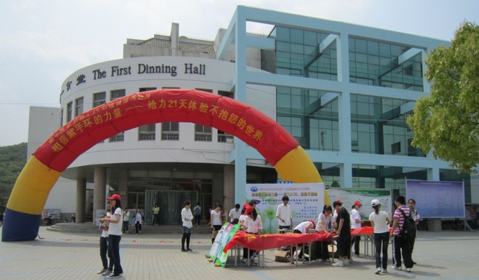 为倡导积极向上的生活态度,由我校大学生心理健康指导中心主办的“相信紫手环的力量——给力21天,体验不抱怨”大型互动活动于2011年4月27日在我校一食堂门口隆重展开,并借此拉开了我校第五届“5·25”心理健康活动月的序幕。