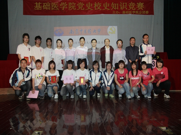 本次党史校史知识竞赛是基础医学院庆祝建党90周年、建校57周年“学党史,树理想信念,学典型,树人生标杆”系列党日活动之一,也是学院分团委“建党90周年,认知党团,唱响中国”校级立项主题团日活动,是学院党建带团建的重要举措。学院在精心组织19个基层团支部认真学习、培训党的基本知识、基本理论、中国共产党历史及南京中医药大学辉发展历史的基础上,通过笔试预赛,选拔了32名选手参与最后决赛。