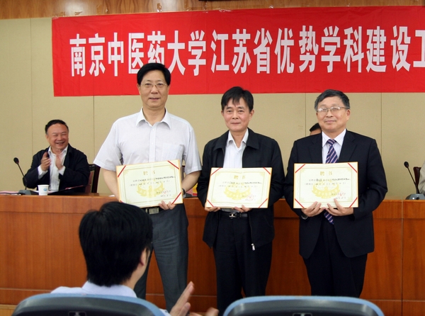 吴勉华教授、刘沈林教授、蔡宝昌教授等三位优势学科带头人在大会发言中表示,三学科获批为江苏省优势学科建设工程项目是省委省政府对学科的信任与支持,全体学科成员一定不负厚望,在下一阶段工作中进一步凝练学科方向、切实加强人才队伍建设、不断加大硬件投入做好平台保障、极力营造良好学术环境、探索体制机制创新,确保三优势学科在第一周期建设中取得满意成效,中医学学科力争成功冲击国家一级重点学科,中西医结合学科集聚学校和附院的优势形成特色并达到全国领先水平,中药学学科确保在成功“保点”的基础上力争“进位”同行业全国排名前三,以优异成绩向省委省政府汇报。第一临床医学院院长汪悦教授和药学院副院长陈建伟教授分别代表依托单位表态将全力支持优势学科建设各项工作,切实保证优势学科建设需要,大力支撑优势学科建设发展,确保顺利完成优势学科建设各项任务。