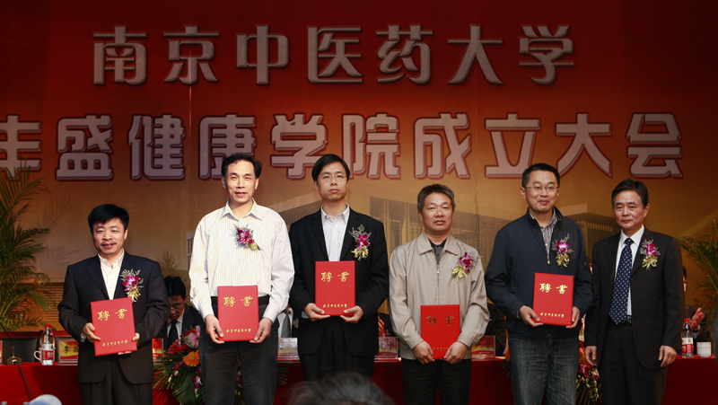 5月24日,丰盛健康学院成立大会暨丰盛楼奠基仪式在我校仙林校区隆重举行。国家中医药管理局副局长马建中、江苏省人民政府副秘书长李一宁、江苏省发改委副主任张卫东、江苏省卫生厅副厅长陈少军等相关部门领导及南京丰盛产业控股集团董事长季昌群等出席了活动。 成立大会由吴勉华校长主持,校党委黄成惠书记代表学校向与会嘉宾致欢迎辞,季昌群董事长代表丰盛集团致辞。黄桂成副校长宣读了丰盛健康学院成立文件,并向丰盛健康学院领导班子成员分别颁发了聘书。 江苏省人民政府李一宁副秘书长在大会发言中表示,南京中医药大学抢先抓住了发展机遇,积极深化教育教学改革,努力整合社会资源,与从事健康产业的企业全面合作,积极开展校企合作办学,共同成立丰盛健康学院,创新了人才培养模式,紧密围绕健康产业的社会需求,构建新的健康产业学科专业体系,积极培养具有中医药特色的养生、保健、健康管理等高素质人才,为我省高等教育改革和发展探索出了一条值得借鉴和推广的新路。省政府将继续关心和支持南京中医药大学的建设和发展,希望学校能以丰盛健康学院的成立作为新的发展契机,努力抢抓机遇,开拓创新,着力推进学校各项事业的又好又快发展,把学校努力办成“国内一流、国际著名”的高水平中医药大学。 国家中医药管理局副局长马建中在会上作了重要讲话,他强调,当前我国医改的各项工作正进入非常重要的阶段,国家教育体制改革试点工作也在江苏深入展开,在这个关键时期,南京中医药大学丰盛健康学院作为校企联合办学模式的探索和实践,它的创立具有十分重要的意义,而且必将产生深远的影响。马局长指出,学校一方面要提高认识,高度重视,把丰盛健康学院作为推动中医药继承创新的重要举措建设好、发展好,在健康产业人才培养方面有务实举措,能培养一批好学生、培育一批好学科、带出一支好队伍、研发一批好产品,达到学院建设的预期效果。另一方面,要牢固树立办人民满意教育的宗旨,在管理体制机制上加强探索和创新,进一步提升社会服务发展能力,突出中医药的特色优势,在中医药医疗、预防保健服务提供等方面积极探索,不断创新,为促进江苏中医药事业又好又快发展做出新的更大的贡献。 大会结束后,全体与会领导和嘉宾一同前往丰盛楼施工工地现场参加丰盛楼奠基仪式,奠基仪式由黄成惠书记主持,与会的领导和嘉宾共同为丰盛楼奠基石揭幕并挥锹培土奠基。 南京中医药大学与丰盛集团合作成立的“南京中医药大学丰盛健康学院”,是国内第一所以祖国传统医学为依托的“健康学院”。丰盛健康学院的成立,进一步创新了我国中医药健康产业校企合作模式,充分发挥了校企双方的资源优势,共同创建了一个崭新的健康学科平台,将为创新健康科学研究、开发健康产品、培养服务于健康产业的高素质人才、推动健康产业可持续发展,提供强有力的人才和技术支持。由丰盛集团捐资6000万元在南京中医药大学仙林校区建设的“丰盛楼”,建筑面积达17000余平方米,采用舒适高效的地源热泵系统,是一栋现代化、高科技、环保节能型的教学科研大楼。该楼建成后将作为丰盛健康学院的教学、科研、办公用房,涵盖教学、实验、科研、模拟医院、多功能报告厅等功能。