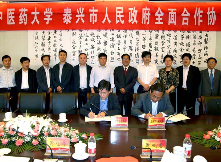 仪式前,与会者们观看了我校“杏林春暖”和泰兴市政府“风华泰兴”的宣传片,双方就合作事宜进行了座谈交流。泰兴市政府领导和有关企业代表就如何开发好泰兴市地方特色资源、校地产学研合作、科技成果转化、人才培养等方面提出了与我校的合作意向和建议,我校科技处、附属医院江苏省中医院等部门负责人分别就各自领域合作事宜作了介绍发言。